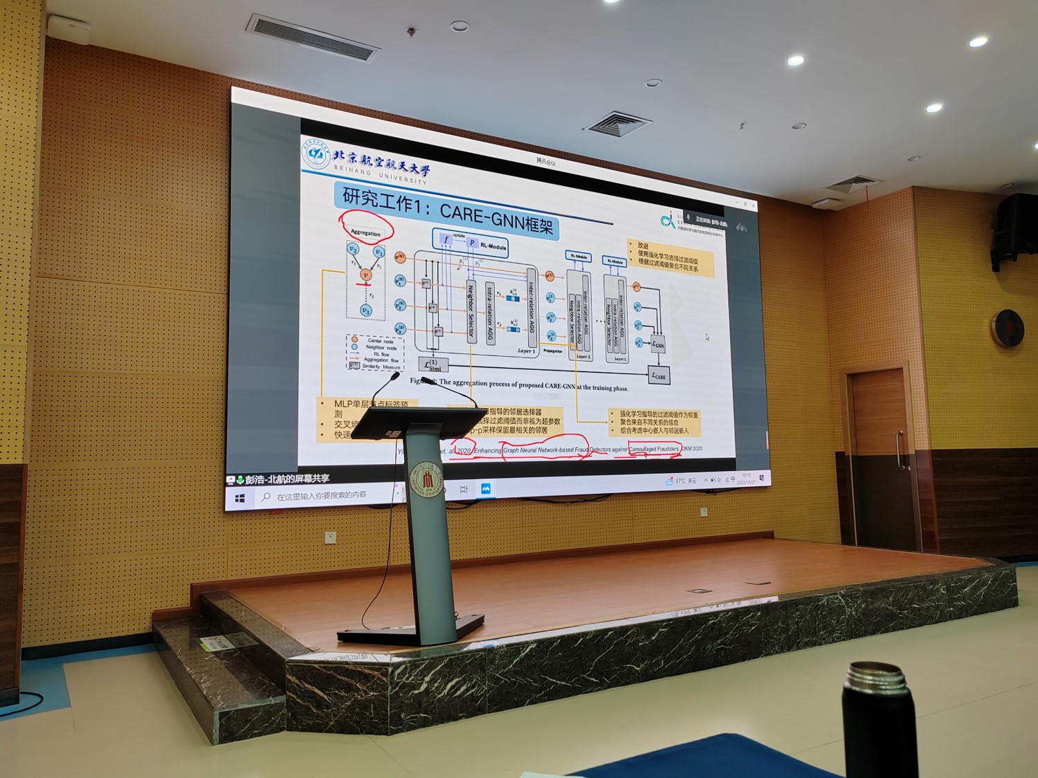 彭浩副教授以团队代表工作为切入点,深入浅出地为同学们分享了图神经网络在强化学习的辅助下,应该如何更好地应用于网络欺诈行为检测、跨语言社会事件检测等网络空间治理的场景中。