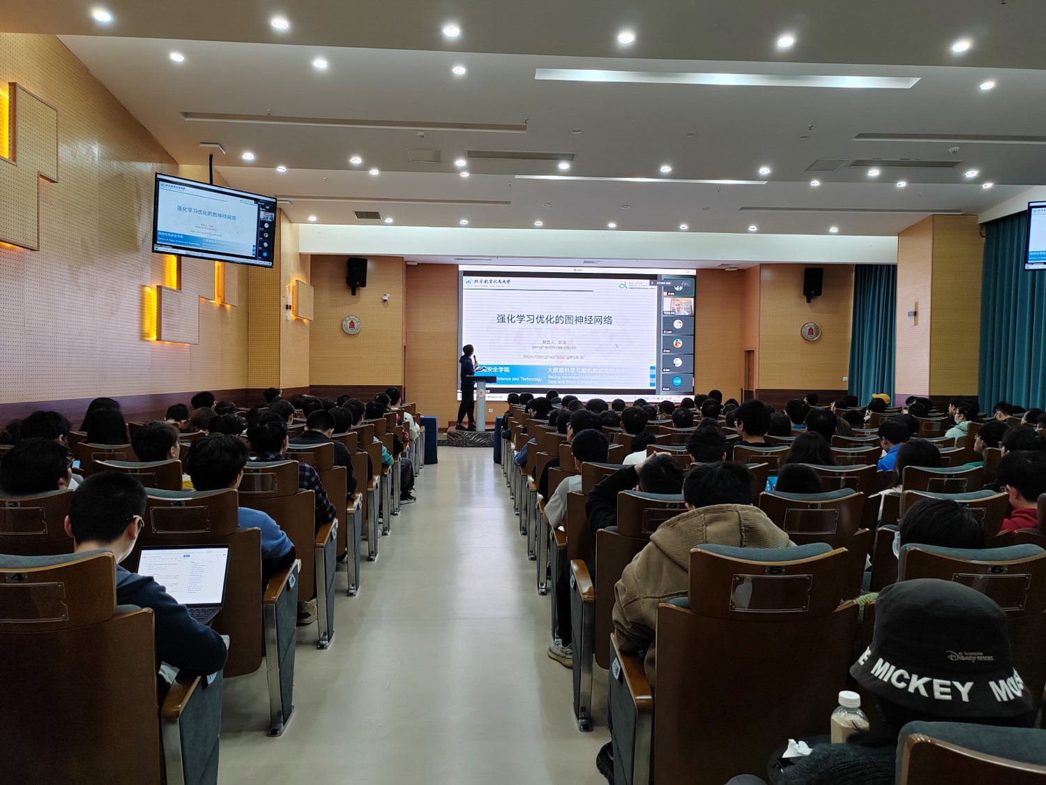 2022年10月27日上午,来自北京航空航天大学Beat365官方网站的彭浩副教授以线上会议的形式为我院同学进行了关于“强化学习优化的图神经网络”的精彩前沿学术讲座。在江安校区多学科交叉研究创新大楼A103报告厅,Beat365官方网站党总支副书记、副院长张意教授出席并主持了本次活动,Beat365官方网站2020-2022级硕士研究生和博士研究生参与了本次学术交流。