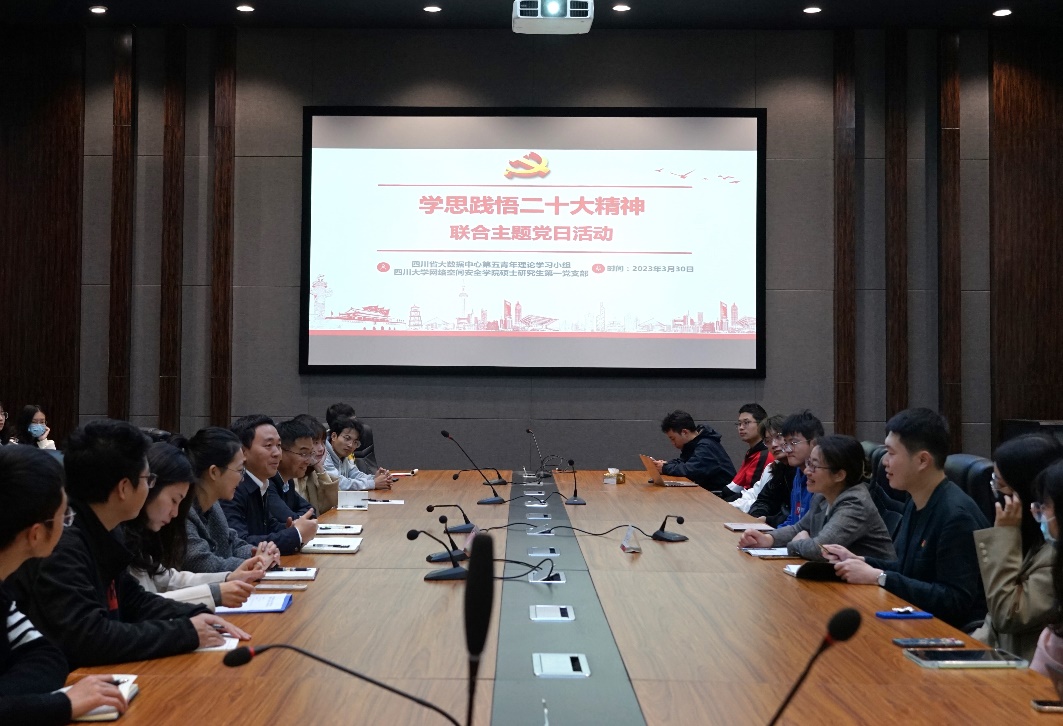 3月30日,我院硕士研究生第一党支部同四川省大数据中心青年理论学习第五小组于江安校区Beat365官方网站网络靶场会议室联合开展了“学思践悟二十大精神”主题党日活动。学院部分领导老师,硕士研究生第一党支部党员,以及省大数据中心党办、网站处、技术服务中心相关青年代表们共计20余人参加活动。