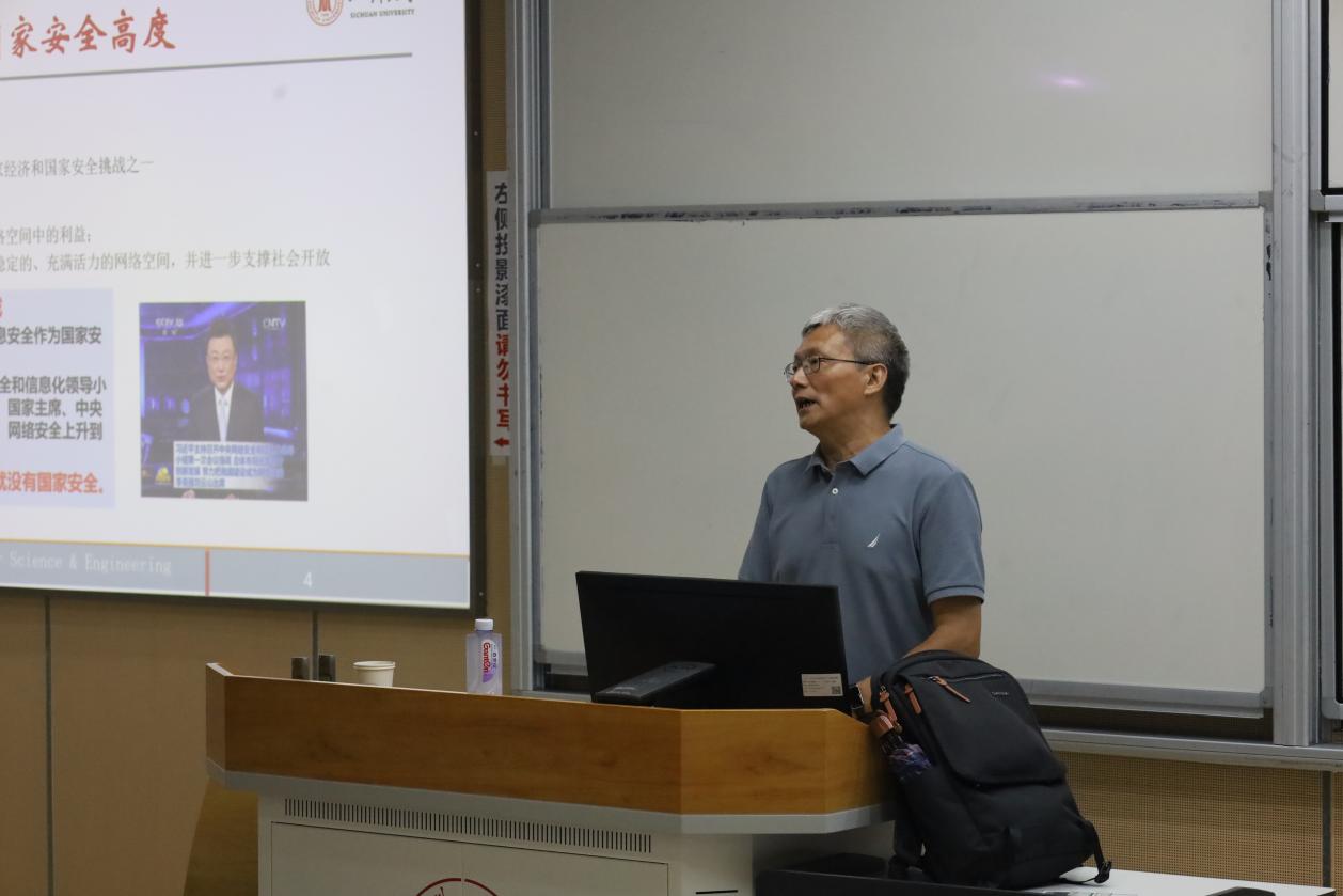 会议伊始,学院副院长杨频教授系统介绍了学院的发展历程,从学科初创到成为网络空间安全领域重要的人才培养与科研基地,展现了学院深厚的办学底蕴与清晰的进阶路径。他还就学院的硬件设施,包括专业实验室与现代化实训平台,作了详细说明,体现出学院对学生实践创新能力培养的高度重视。在人才培养方面,杨频教授重点解读了网络安全与法学双学位项目的课程结构、培养目标与选拔机制,为有意向的学生及家长提供了权威、清晰的指引。