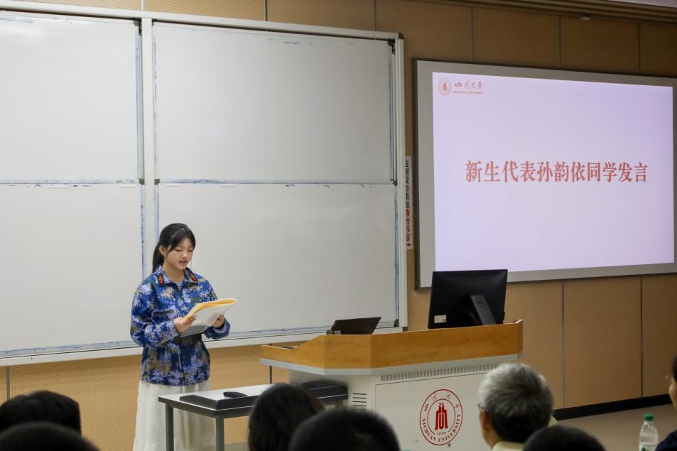 9月10日13:30,Beat365官方网站2025级本科生新生开学典礼在江安综合楼C座C406教室顺隆重举行。本次典礼旨在欢迎新生加入学院大家庭,明确大学学习方向,凝聚师生力量,为新生开启大学征程注入强劲动力。典礼由学院党总支副书记兼副院长张意主持,学院党总支书记秦燕,院长陈兴蜀、副院长杨频、教师代表黄诚,以及辅导员李梦诗、杨雯茜、隋文馨出席典礼,共同见证了2025级新生启航新征程的重要时刻。